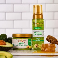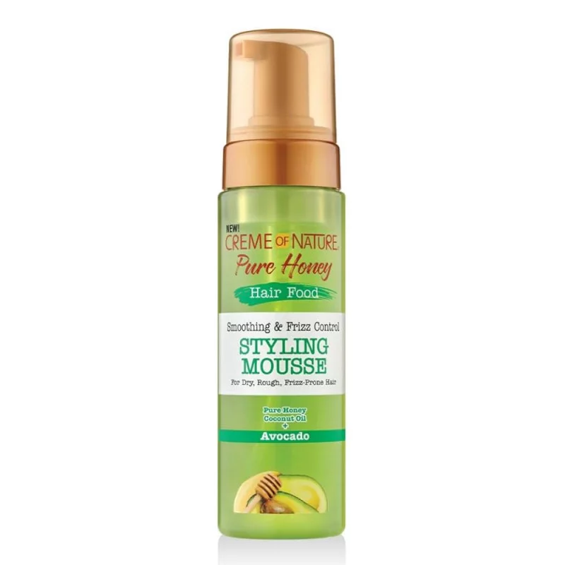 La mousse de peinado Pure Honey Smoothing Frizz Control de CREME OF NATURE es perfecta para crear estilos que no dejan residuos ni rigidez. Su fórmula ayuda a que el peinado se mantenga por hasta 72 horas.