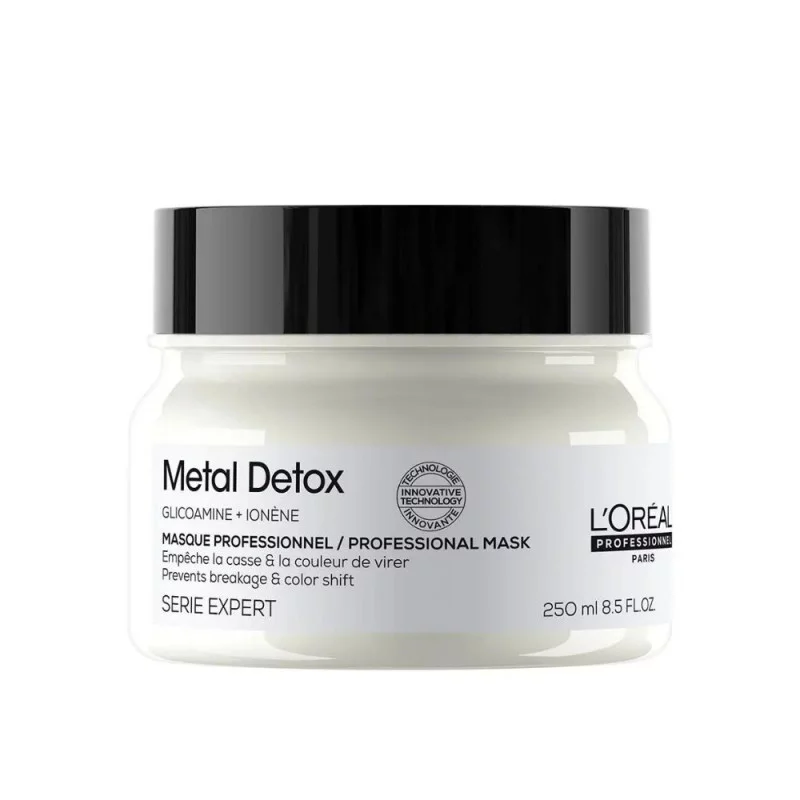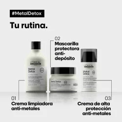 La mascarilla detox anti-depósitos de metal para pelo teñido de Metal Detox protege la fibra de nuevos depósitos de partículas de metal después de cualquier color o balayage.