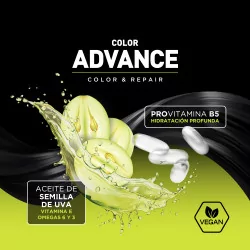 Coloración permanente que ofrece 7 beneficios en 1. Su fórmula contiene ultra conditioner que ayuda a desenredar y controla el encrespamiento y el ácido hialurónico es hidratante. Ofrece una cobertura del 100 % de las canas, un color intenso y brillante hasta 5 semanas, protege la cutícula, nutre y controla el encrespamiento.