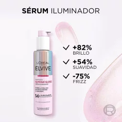 L'Oréal Paris Elvive Glycolic Gloss es mucho más que un serum iluminador; es el secreto para lograr un cabello radiante y saludable desde la comodidad de tu hogar. Olvídate de la opacidad y la falta de brillo. Con su avanzada fórmula, este producto proporciona un brillo intenso y duradero. Luce un cabello deslumbrante con Elvive Glycolic Gloss y redescubre la belleza de tu melena.