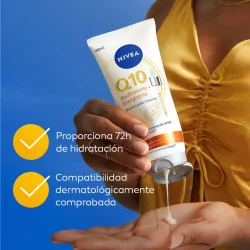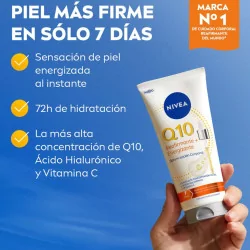 NIVEA Q10 Serum-Loción Corporal Reafirmante y Energizante con la más alta concentración de Q10*, ácido hialurónico y vitamina C, reafirma la piel en sólo 7 días y proporciona una sensación de piel energizada al instante (*dentro del surtido Corporal de NIVEA).