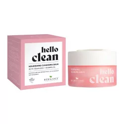 El bálsamo limpiador nutritivo 3 en 1 Hello Clean es un limpiador suave que se transforma de un bálsamo cremoso a un aceite sedoso al aplicarlo sobre la piel.