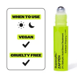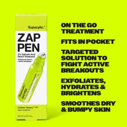 Una solución para llevar, diseñada para combatir los brotes activos. El Supacylic Zap Pen contiene una mezcla de ácido salicílico al 2 % y extracto de raíz de jengibre para ayudar a tratar, combatir y aliviar los brotes activos.