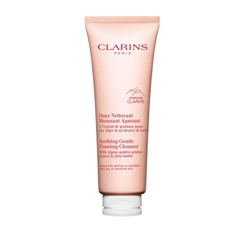 Esta espuma limpiadora, enriquecida con extractos de hierbas alpinas procedentes de la Hacienda Clarins, desmaquilla, calma las pieles secas y elimina las impurezas mientras preserva el equilibrio cutáneo. Enriquecida con activos seleccionados específicamente para equilibrar las pieles muy secas o sensibles: la manteca de karité bio hidrata la piel y el extracto de camomila bio reduce la sensación de tirantez. Su fórmula está enriquecida con el [Gentle Complex] de Clarins, que contiene extractos de genciana amarilla bio y de melisa bio que calman y suavizan la piel. Por último, el extracto de semilla de moringa limita la adherencia de impurezas sobre la piel. Textura cremosa reconfortante que se transforma en una suave espuma fina. Para reducir su huella medioambiental, Clarins ha rediseñado este producto con un tubo más ecológico gracias a su cápsula más ligera.