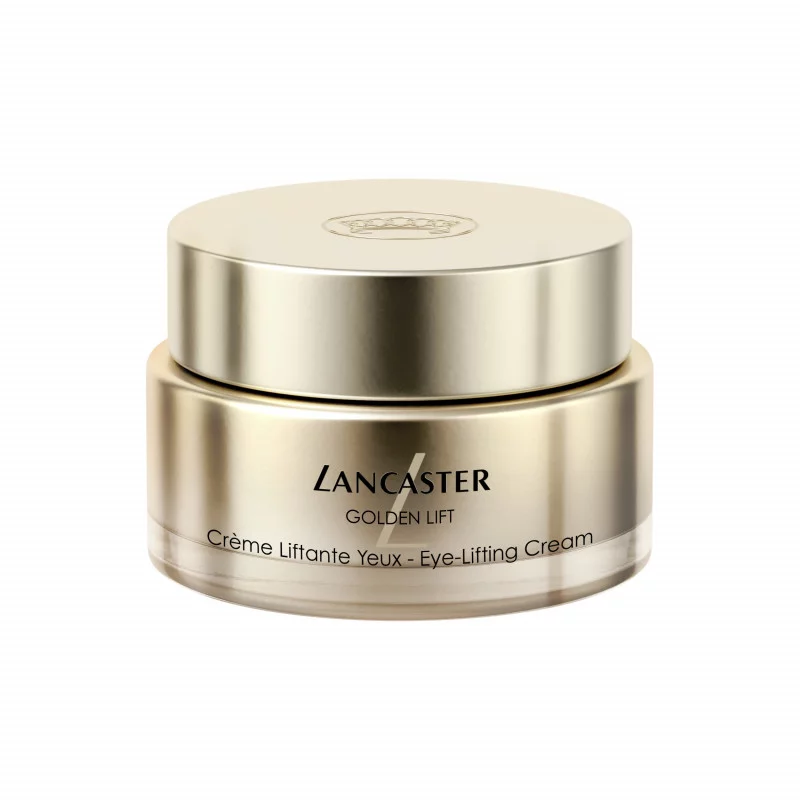 Lancaster Golden Eye-Lifting Cream 15 ml es la crema especialista para un contorno de ojos efecto lifting. Revierte los signos del fotoenvejecimiento con esta pionera crema de ojos que reafirma y tensa toda la zona del contorno de los ojos —cejas, párpados superiores e inferiores, ángulos externos del ojo y sienes— para reducir la apariencia de los ojos "caídos" y abrir la mirada.