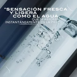 Al potenciar la capacidad de autohidratación de la piel, la fórmula contiene un potente trío de ácidos hialurónicos que ejercen una acción redensificadora y proporcionan 24 horas de hidratación cutánea. Mientras tanto, el hamamelis y la niacinamida actúan para reducir los poros y reavivar la luminosidad natural de la piel.