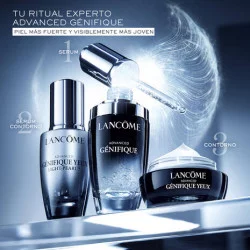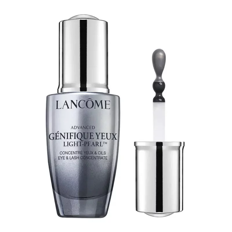 Nuestro serum contorno de ojos y pestañas experto Advanced Génifique Yeux Light-Pearl combina por primera vez 7 Extractos de Pre y Probióticos para una mirada más saludable y fortalecida, Cafeína para una piel revitalizada con ojeras y bolsas reducidas; y Arginina para unas pestañas fortalecidas y un contorno de ojos hidratado.