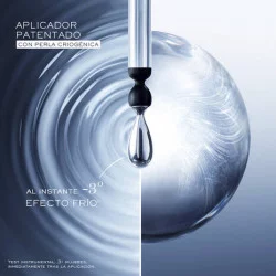 Al instante, consigue -3º* efecto frío gracias a su aplicador experto patentado con una perla criogénica de acero inoxidable que alivia y descongestiona las bolsas para una mirada descansada y ampliada.