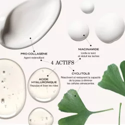 Enriquecido con ácido hialurónico, procolágeno y niacinamida, este sérum actúa en el corazón de las células epidérmicas y combate el envejecimiento favoreciendo la regeneración celular: alisa, unifica e ilumina la piel.