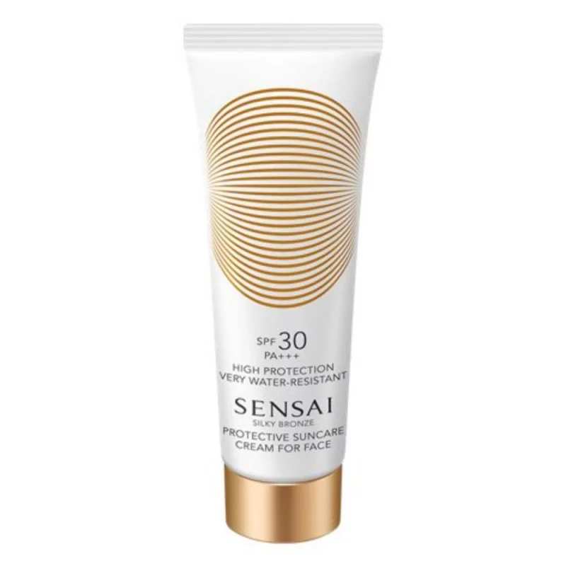 Silky Bronze Protective Suncare Cream for Face SPF50 / PA++++ es crema solar para rostro que ofrece una protección eficaz frente a los rayos UV, mientras combate los signos visibles del envejecimiento prematuro dejando un acabado transparente, sin sensación grasa y siendo muy resistente al agua y al sebo.