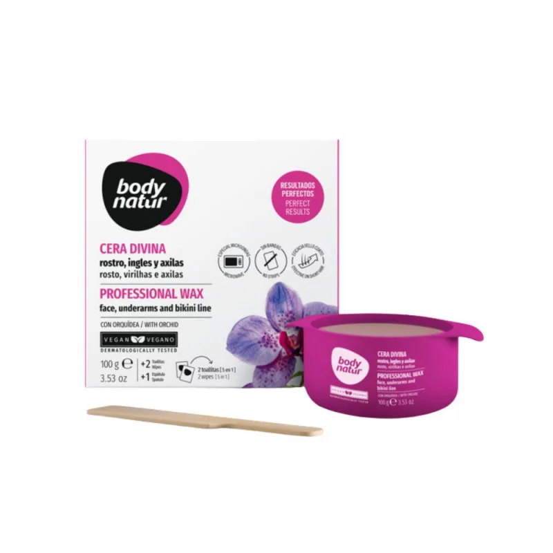 Formulada a base de resinas naturales y enriquecida con Orquídea, la Cera profesional Body Natur resulta idónea para la depilación del rostro y las zonas delicadas.