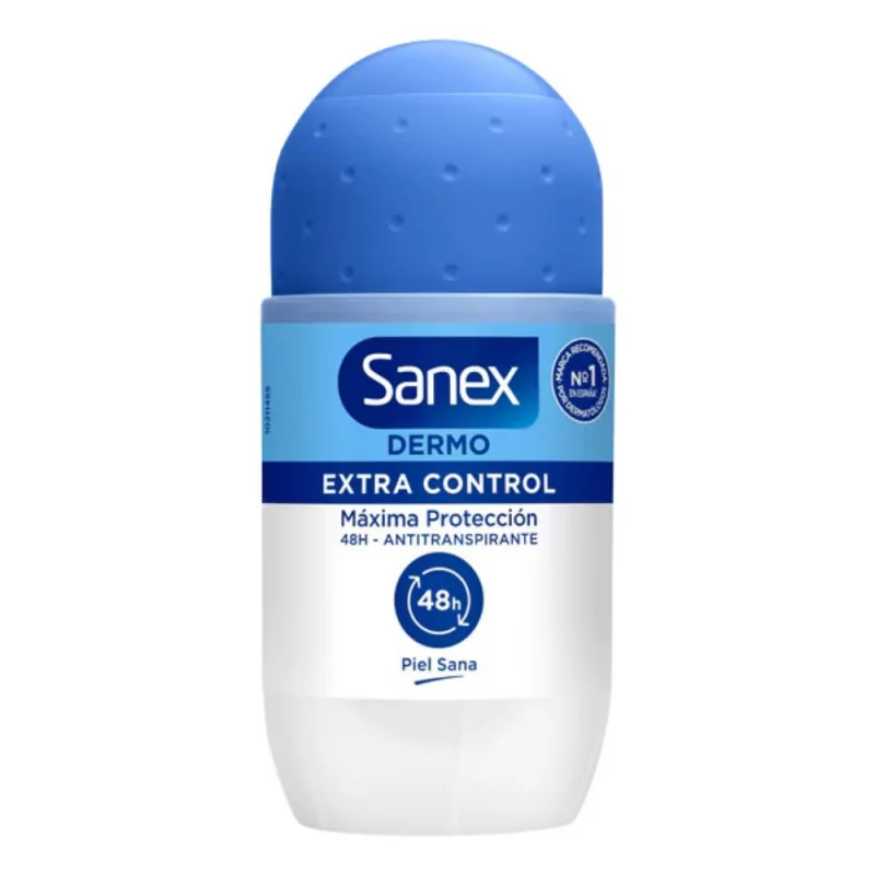 Sanex Dermo Extra Control Desodorante roll-on con bajo contenido de talco y antitranspirante. Buena protección hasta por 48 horas. Elimina la fuente de olor y restaura el pH natural de la piel. No contiene etanol. 0% de alcohol. Dermatológicamente Comprobado. buena piel.