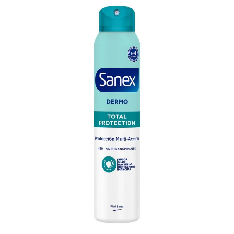 Consigue 5 increíbles beneficios del desodorante antitranspirante en spray Sanex Dermo Total Protection para mantenerte fresco y seguro todo el día. ¡Este antitranspirante en spray ha sido formulado especialmente para ofrecer una protección eficaz frente al sudor, el olor, las bacterias, la irritación y las manchas de hasta 48 horas! Al tiempo que ofrece una excelente protección multiacción, este spray antisudor 5 en 1 también incluye ingredientes redensificantes adicionales que cuidan la delicada piel de las axilas. Además, el antitranspirante en spray está probado dermatológicamente y está diseñado para restaurar el pH natural de la piel.