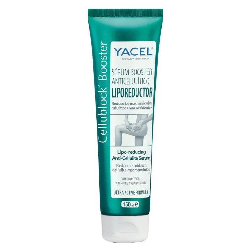 YACEL Cellublock Booster  favorece la reducción de los nódulos celulíticos y ayuda a reducir las grasas acumuladas. Activa la movilización de líquidos y toxinas además de mejorar el drenaje linfático. Por último, aporta firmeza, elasticidad e hidratación a la piel.