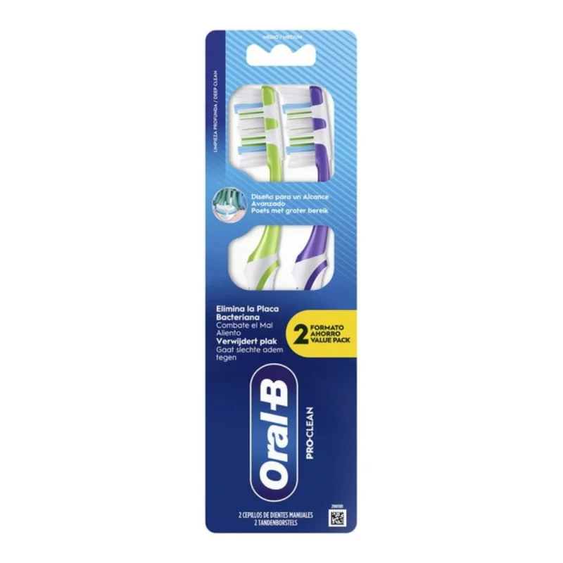 Obtén una limpieza profunda y quita la placa dental sin esfuerzo con el cepillo de dientes Oral-B Pro-Clean. Este cepillo manual tiene cerdas interdentales que limpian entre los dientes y remueven la placa.