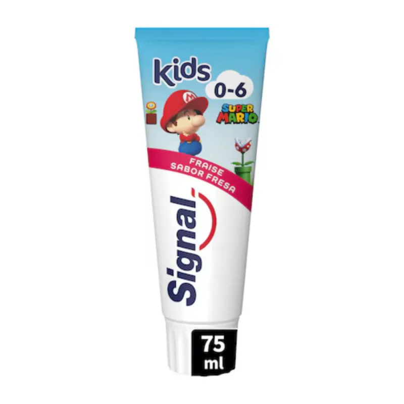 Nuevo dentífrico Signal infantil 0-6 años con sabor a fresa, para una protección a largo plazo contra las caries. Diseñado específicamente para las necesidades de los niños de hasta 6 años. Signal Kids 0-6 Fresa tiene una fórmula extra suave, diseñada para niños.