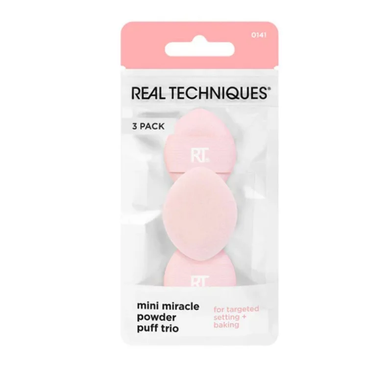 El trío de esponjas en polvo Mini Miracle de Real Techniques le ofrece 3 bocanadas de tamaño mini diseñadas con nuestro material de esponja en polvo más vendido para un fraguado y horneado específicos. Estas bolitas de maquillaje extra pequeñas se deslizan sobre el dedo y se mantienen en su lugar con la banda de control para una aplicación fácil y precisa. Aplique productos en polvo debajo de los ojos, alrededor de la nariz o en cualquier lugar donde se ponga grasoso para fijar o hornear sin problemas. Nuestro material de esponja para polvos más vendido está fabricado con fibras de terciopelo que recogen y aplican el polvo para lograr un efecto difuminado en la piel. Estas borlas para polvos también son perfectas para llevarlas mientras viajas y realizar retoques a lo largo del día. Se recomienda reemplazarlos cada 30 días. Como ocurre con todos nuestros productos RT, estos Mini Miracle Powder Puffs son 100% veganos y libres de crueldad animal.