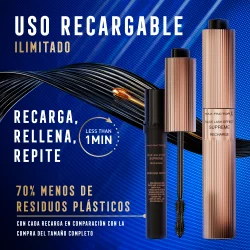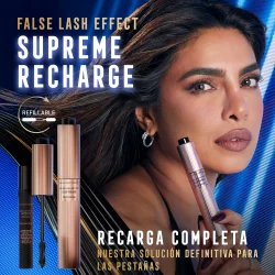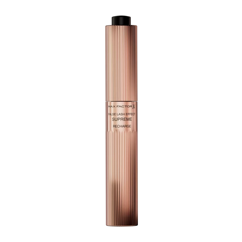 Descubre nuestra solución más suprema para pestañas, nuestra primera máscara de pestañas recargable, Max Factor False Lash Effect Supreme Recharge. Aumenta 7X más volumen al instante, y además cuida tus pestañas dejándolas visiblemente más fuertes, pobladas y saludables en solo 4 semanas. La máscara Supreme Recharge cuenta con un cepillo modelador de pestañas con cerdas únicas que cubren cada pestaña de principio a fin para un efecto instantáneo de pestañas postizas, full impacto y volumen total. Su fórmula infusionada con sérum de Keratina brinda un tratamiento prolongado para las pestañas, fortaleciéndolas semana a semana. Conoce su innovador diseño de alta tecnología, de fácil y práctica recarga en un 1 sólo minuto, para un uso infinito. ¡Recarga, rellena, repite!
