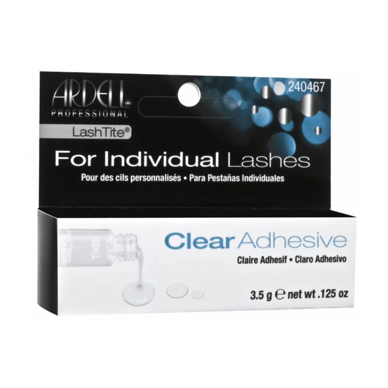 ADHESIVO TRANSPARENTE pestañas sueltas de Ardell. Adhesivo claro para pestañas artificiales individuales. Pon el pegamento en el conjunto de pestañas y espera alrededor de 30 segundos antes de usarlas mientras el adhesivo se adhiere, luego coloca sobre los párpados lo más cerca posible de la base de las pestañas naturales.