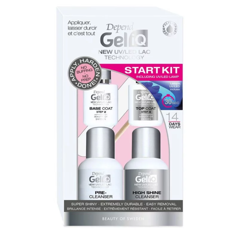 El kit de inicio contiene todo lo necesario excepto tu esmalte de color favorito y los productos para retirarlo, que se venden por separado.