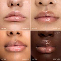 Descubre Lip Idôle Juicytreat de Lancôme, el gloss hidratante que transforma tu rutina de labios con un brillo 3D espectacular y sin sensación pegajosa. Enriquecido con un 20% de escualano, proporciona hasta 24 horas de hidratación* y suavidad, reduciendo la apariencia de las líneas de expresión. Además, el ácido hialurónico ayuda a suavizar y rellenar la superficie de los labios.. Su innovador aplicador Maxi Lip-Hugging se adapta a la forma de los labios, garantizando una aplicación uniforme y precisa en una sola pasada. Con una textura ligera y un efecto refrescante gracias al mentol, este gloss ofrece confort absoluto mientras potencia el volumen natural de los labios. Disponible en múltiples tonos, Juicytreat es el complemento perfecto para un look luminoso y jugoso.  *Test instrumental en 24 mujeres.