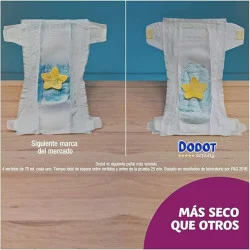 Absorción total con un sistema de 3 capas que absorbe más rápido el pipí y la caquita líquida, ayudando a prevenir erupciones cutáneas.