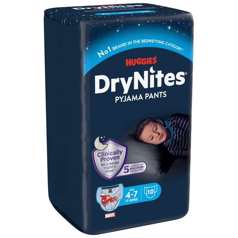 Los pijamas absorbentes DryNites son la solución perfecta para niños de 4 a 7 años que mojan la cama. Es sumamente cómoda y gracias a sus capas de protección y la capacidad de ajustarse a la forma de tu cuerpo, la ropa interior es tan delgada y liviana que no hay demora en llegar al país de la noche. Proporcionan suficiente protección para ayudar a los niños a recuperar su confianza mientras duermen tranquilamente en casa y en otros lugares.