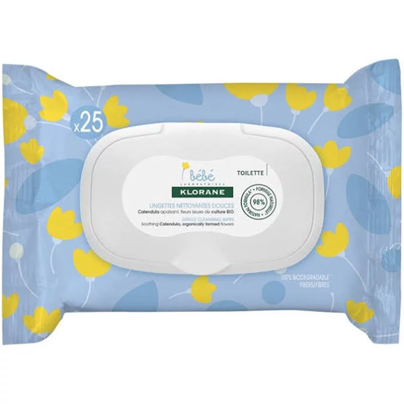 Las toallitas limpiadoras suaves Klorane Baby están enriquecidas con extracto de caléndula KLORANE para calmar y proteger, y están especialmente formuladas para la piel del bebé, la higiene y el cambio de pañales.