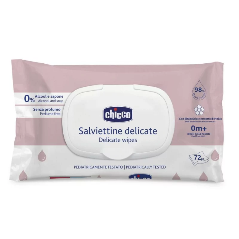 Formulado con un 98% de agua y enriquecido con extracto de malva y bisabolol. Testado dermatológicamente bajo control pediátrico. La práctica tapa que se abre y se cierra permite conservar durante más tiempo la frescura de las toallitas