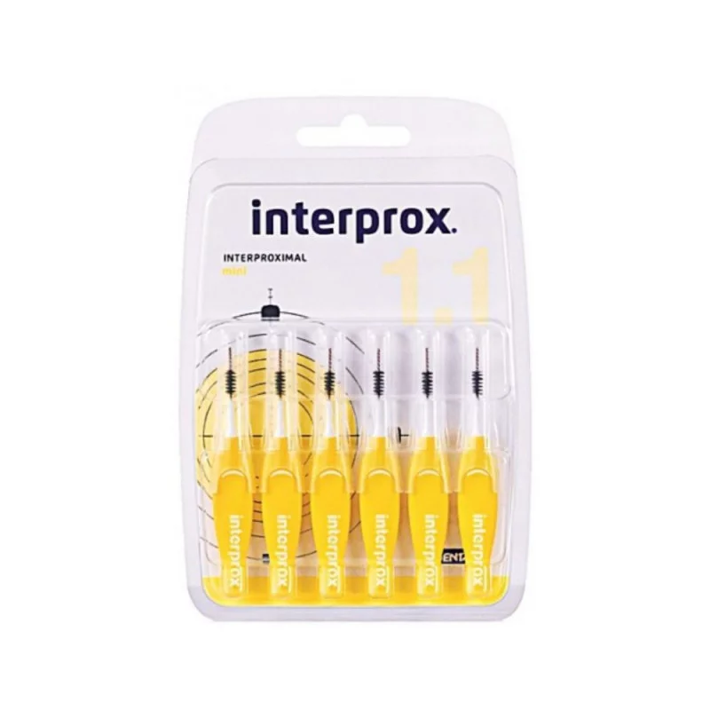 Las dimensiones del cepillo Interprox Mini de Dentaid son ideales para espacios entre los dientes que midan al menos 1,1 mm y es un artículo muy útil en la zona frontal de la boca.
