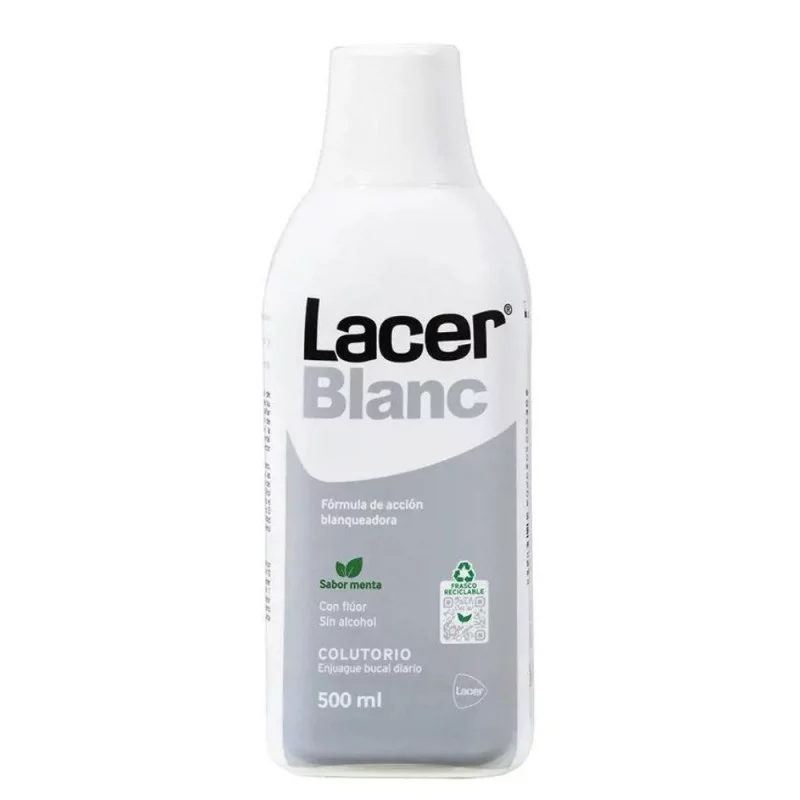 Enjuague bucal de uso diario que devuelve a los dientes su color natural, brillo y suavidad sin dañar el esmalte dental. Para un efecto blanqueador completo, utilizar la pasta dentífrica Lacer Blanc Plus.