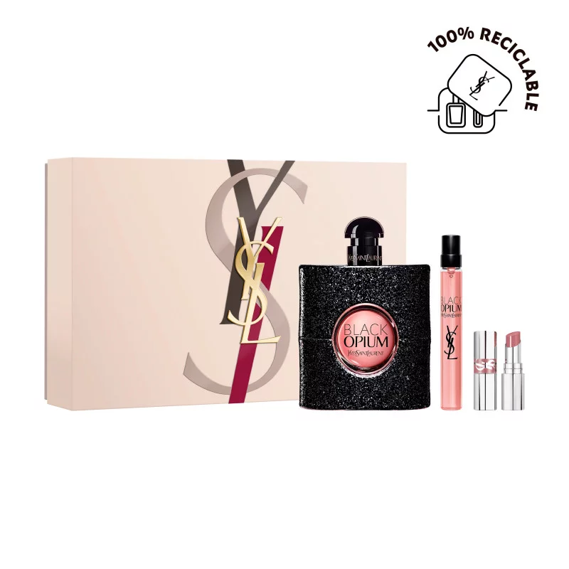 El cofre incluye los productos más icónicos de la línea Black Opium de YSL: