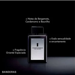 The Secret de Banderas, un perfume masculino intrigante y atractivo, que guarda el secreto del éxito del verdadero seductor con un aroma a menta.
