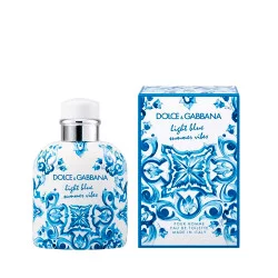 El eau de toilette Light Blue Summer Vibes Pour Homme Design expresa la alegría del verano en una elegante botella, envuelta en un motivo esmaltado y adornada con una tapa blanca. Dolce & Gabbana Light Blue Summer Vibes Pour Homme Eau de Toilette: Una fragancia aromática soleada. La fragancia fue creada por Alberto Morillas en exclusiva para Dolce&Gabbana.