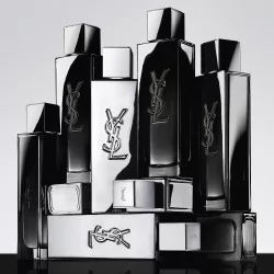 Un frasco con acabado espejo metálico que refleja la esencia de la masculinidad moderna y la elegancia atemporal de YSL.