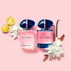 My Way intense es una invitación a un viaje de autodescubrimiento, encuentros significativos y experiencias amplificadas. Una floralidad amplificada sobre una adictiva estela amaderada, elaborada con ingredientes de origen consciente. Esta fragancia de mujer se abre con brillantes notas de flor de azahar de Egipto. Un nuevo e intenso corazón de nardo de la India que desvela una faceta cremosa y aterciopelada de la firma floral. En la base del perfume el sándalo de Nueva Caledonia da un giro cremoso y adictivo al encontrarse con una voluptuosa vainilla de Madagascar.