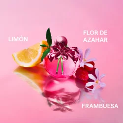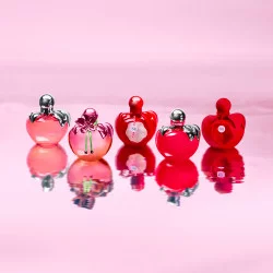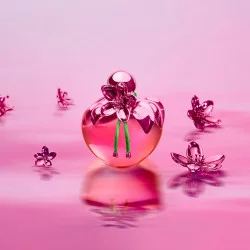 El icónico frasco con forma de manzana de Nina se ha vuelto rosa metalizado y está adornado con una joya a juego, en forma de flor que puede llevarse como un precioso accesorio. El estuche presenta una fascinante ilustración y un mensaje secreto oculto en su interior. ¡Una pura delicia para la vista!