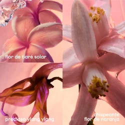 El resplandor de una sensualidad luminosa revela sus múltiples facetas. Flores brillantes bajo el sol. Un radiante ramo de flores impregnado de una sorprendente sensualidad de las notas aromáticas y el musgo de roble solar. Descubre la chispeante energía de piel de mandarina y naranja caldeadas por el ylang ylang y flores blancas. Una inmediata sensación de transportarte un lugar lleno de luz.